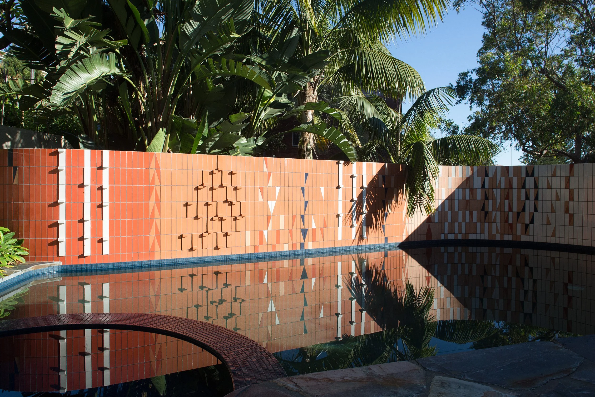 Commissioned by Neeson Murcutt, this 15-metre ceramic mural wraps around the swimming pool of a Bronte home nestled into sandstone and garden. Rising like a reimagined ruin, the architecture invites a rich conversation between form, site and surface. Lymesmith’s mural builds on that dialogue, demonstrating a robust materiality and revelling in the physicality of its site.